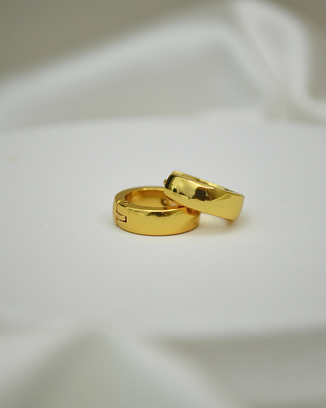 Estos aros dorados y de forma compacta crean un look moderno, atemporal y versátil. Su diseño tipo huggie los convierte en el básico imprescindible para todos los días. Livianos, cómodos y con un cierre seguro.